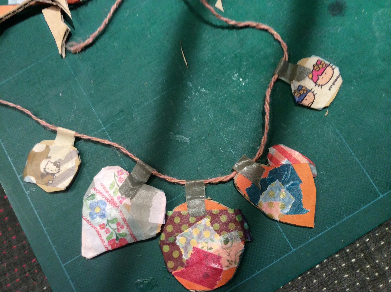 ちっちゃなダンボールビーズをたくさん作って繋げて首飾り。